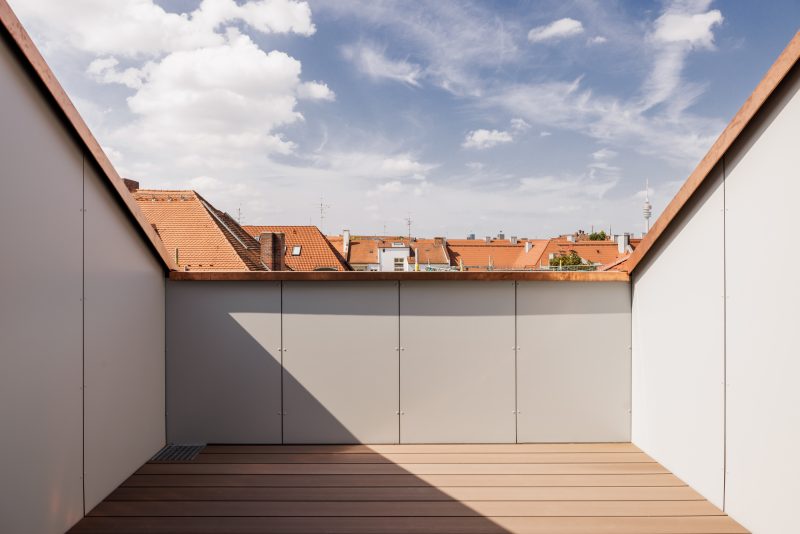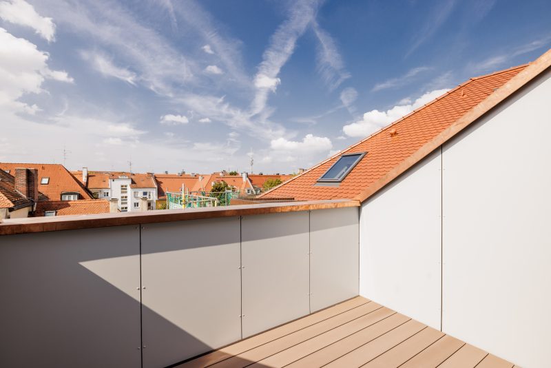 - Dachterrasse mit Beleuchtung, Außensteckdose und WPC-Dielenboden