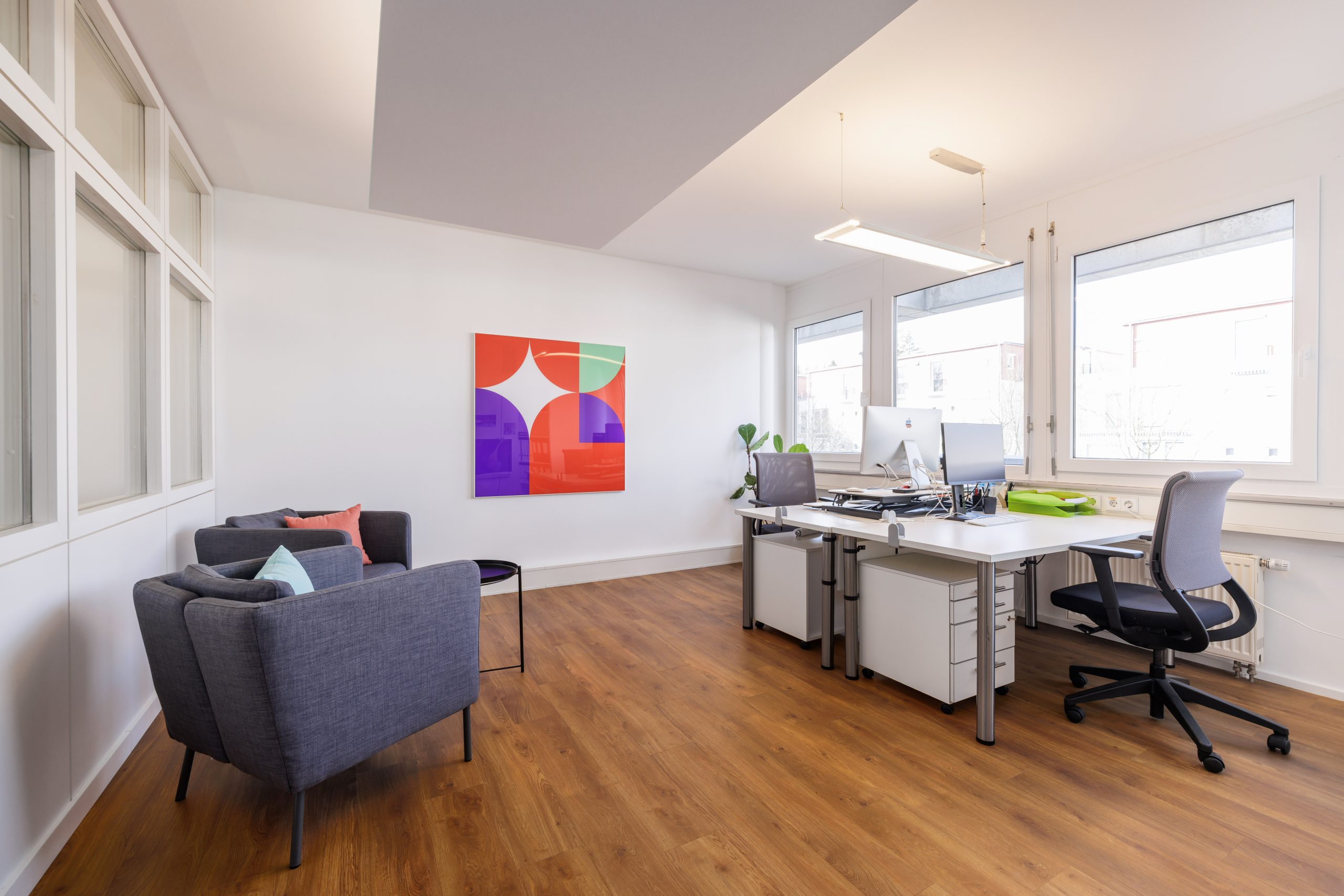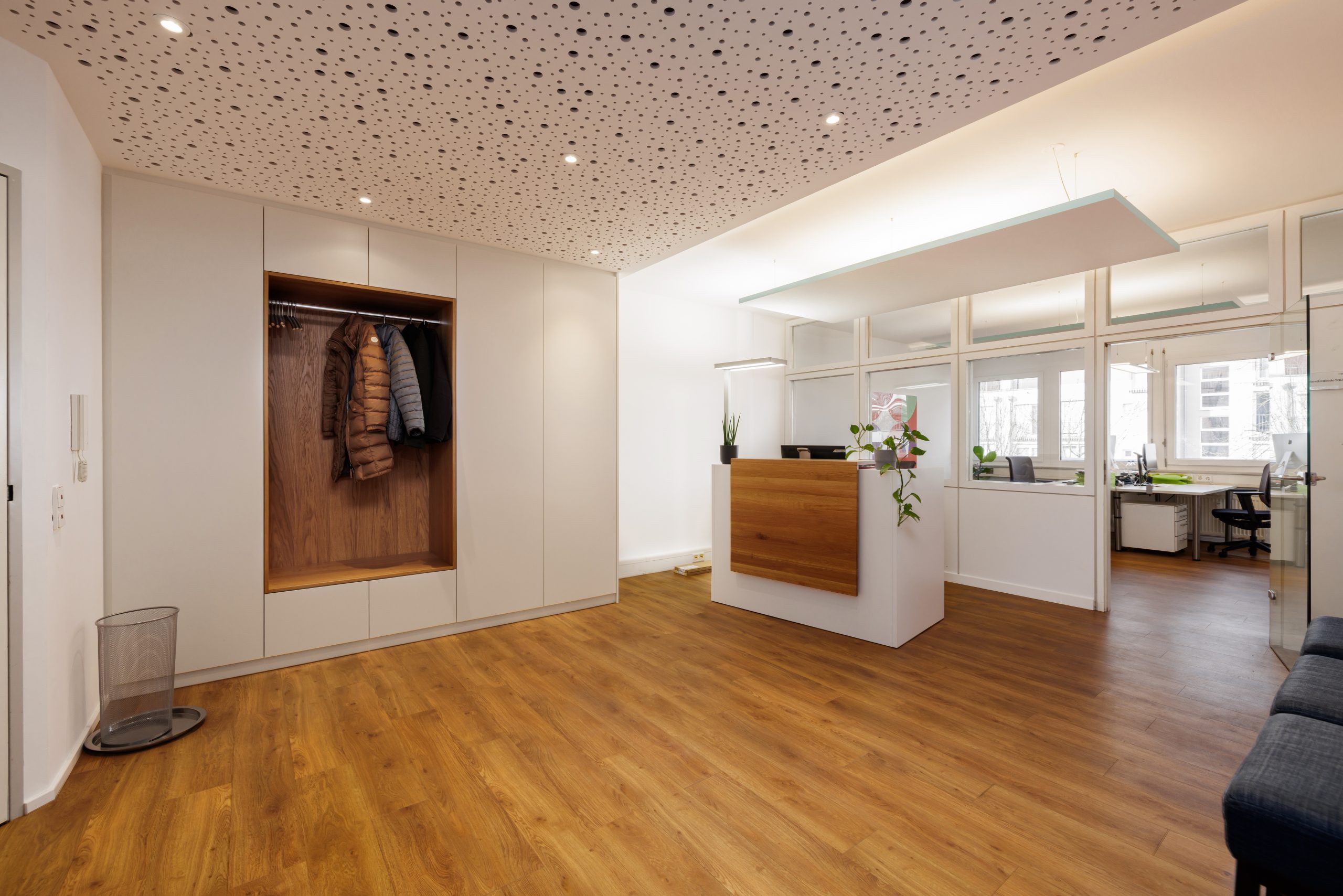 Repräsentativ und stilsicher präsentiert sich diese Büroeinheit im 1. Obergeschoss eines modernen Büro- und Wohngebäudes. Die Fläche wurde erst im Jahr 2024 unter der Planung eines Architekturbüros umfassend umgebaut. Dabei kamen hochwertige Materialien sowie eine zeitgemäße, den aktuellen Designansprüchen entsprechende Ausstattung zum Einsatz.