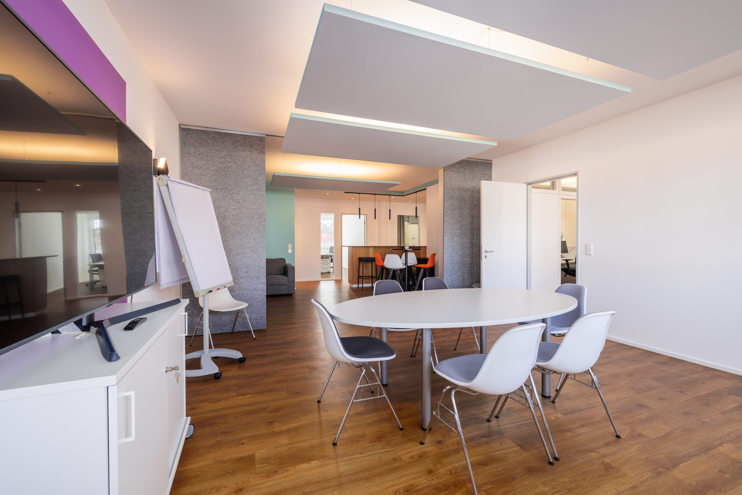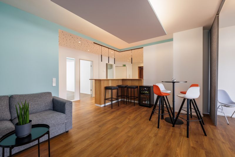 Das Ergebnis ist eine gelungene Symbiose aus Funktionalität und Ästhetik, die sich in jedem Raum widerspiegelt und ein anspruchsvolles wie zugleich inspirierendes Arbeitsumfeld schafft.