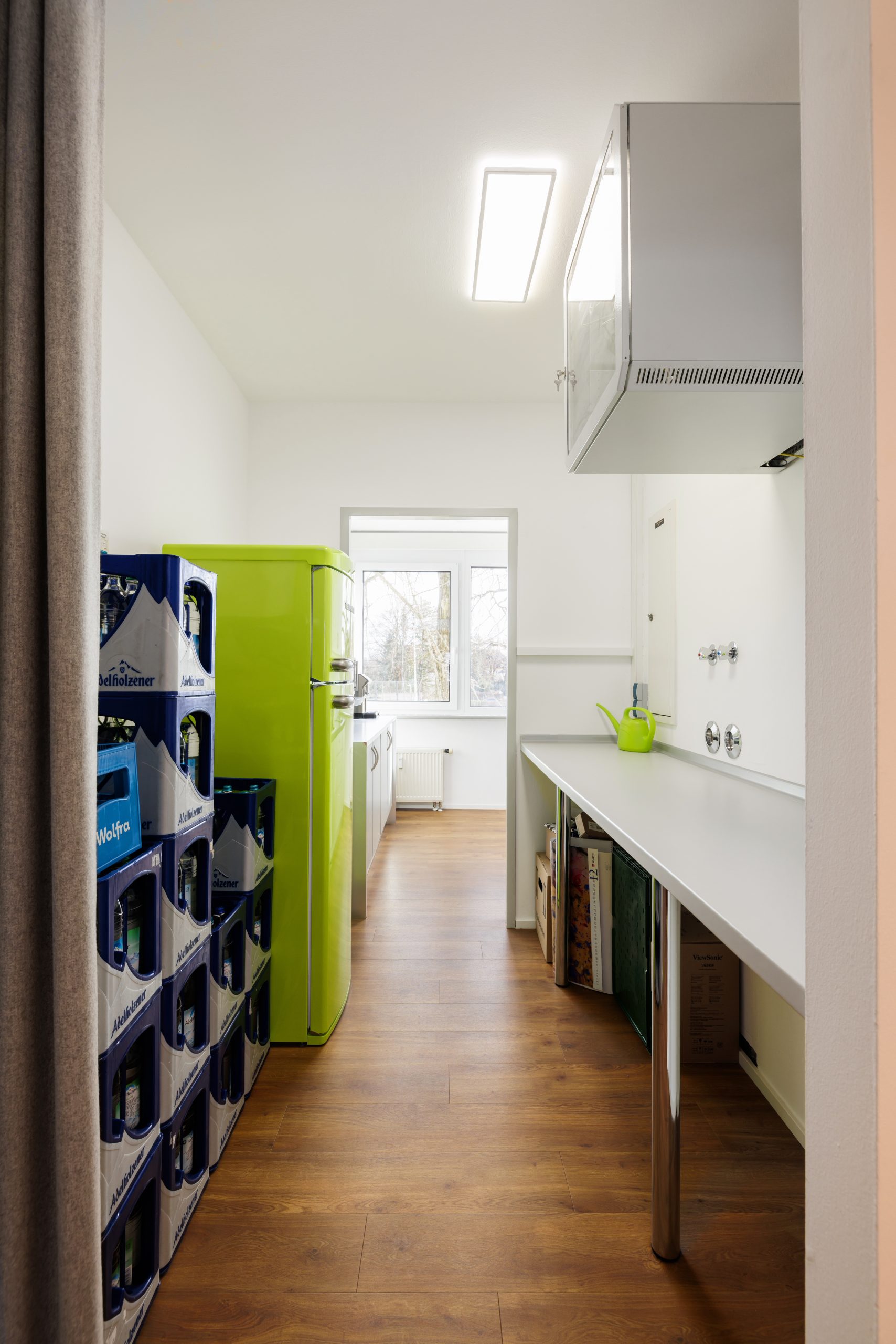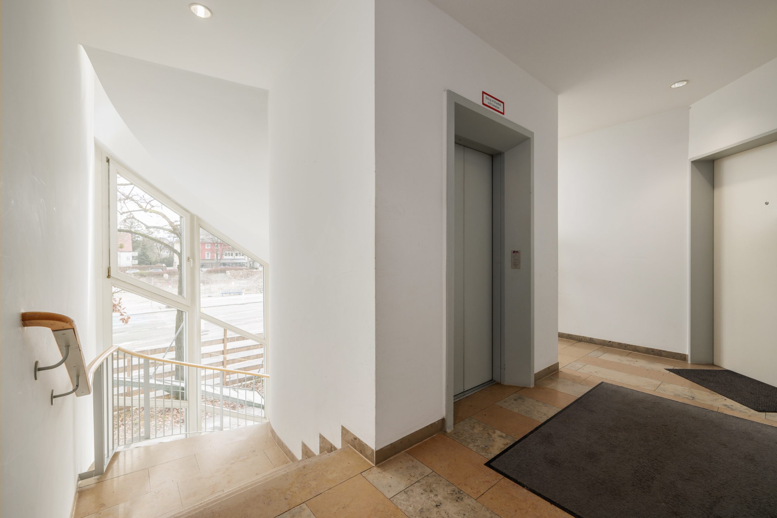 Das architektonisch markante Gebäude unterstreicht einen professionellen Unternehmensauftritt. Der straßenseitige Gebäudeteil ist gewerblich genutzt, während sich im rückwärtigen Bereich Wohnungen befinden – eine Kombination, die Urbanität mit einem angenehmen Umfeld verbindet. Die Lage im beliebten Waldfriedhofviertel bietet ein attraktives Arbeitsumfeld mit gewachsenem Charakter.