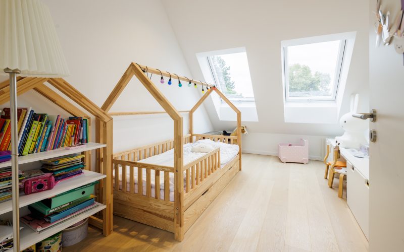 - Kinderzimmer 1 mit Podestnische und Zugang zum Treppenhaus
