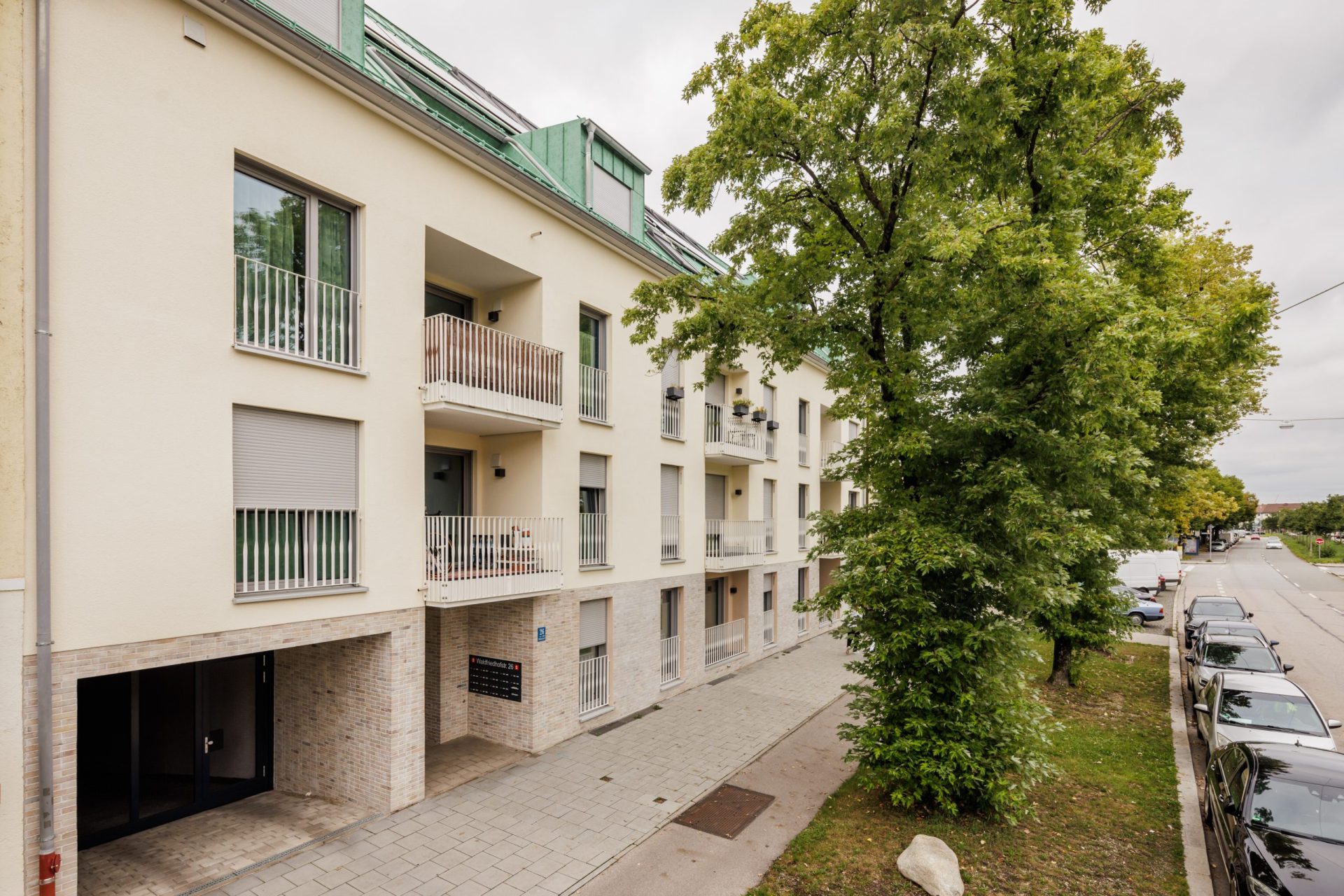 In zentraler Lage des Waldfriedhofviertels wurde in 2021 die Wohnanlage „Waldo“ mit 18 Wohneinheiten und einer Tiefgarage errichtet. Die Infrastruktur und die Verkehrsanbindung sind ideal, zur U-Bahn-Station Westpark sind es nur wenige Minuten.